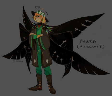 Formerly known as Azrael, Philza is the Angel of death. He is the second oldest seraphim, the second highest-ranking angel in Heaven, and Lucifer's eldest brother.When it came time for Lucfier's trial, Sera hid what his little brother's punishment would be from Philza, so he voted Lucifer guilty, thinking he would only get some sort of probation. Philza was then horrified when his little brother was cast into Hell. Philza lost a lot of faith in Heaven due to this.Many people pressured Philza afterward because he was the closest of the brothers to Lucifer. No one wanted him to end up like the Devil; they constantly reminded him of this.Later, Philza was given the order from Sera and The Big G himself to go and kill the eldest child of every home in Egypt as the last of the plagues. This order was the final straw for Phil due to him being celebrated afterward for erasing the souls of innocent children. Philza quickly assembled his personal army - a group of angels called 'Crows' - left Heaven and vowed never to raise his weapon against an innocent soul again.Philza still does his job as the Angel of Death but does things his own way. He now lives on Earth in a secret kingdom hidden away from the humans. He spends most of his free time expanding his land.Philza also visits Hell to check in on his family there. Within Hell, he is known as an Overlord named 'The Crowfather,' but due to constant leaves of absence, people consider him an urban myth, dead, or depowered.