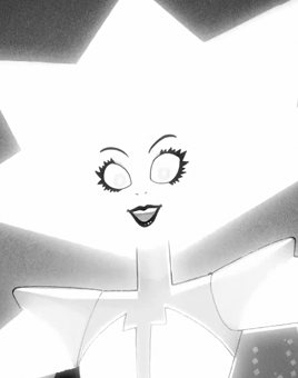 White Diamond's story begins when Steven Universe accidentally corrupts himself. White Diamond, realizing how deeply her actions towards the boy have hurt him, confronts his mysterious self on her own.Unlike in canon, White doesn't make the situation about herself but instead does everything she can to bring Steven back. She tearfully hugs him and apologizes, holding him back from the Crystel Gems and White's fellow Diamonds. Steven keeps attacking White repeatedly, but she refuses to let go. Soon, the damage overwhelms White's strength, and she poofs; her gem is crushed under Steven's foot and shattered.White Diamond's arrival in Hell is mostly uneventful: she wakes up, checks out her new form, makes sure she still has her powers, and figures out where she is. She wanders Pentagram City for a while, trying to find a place to settle down.Eventually, she learns about the other Rings of Hell and, not knowing that Sinners normally couldn't traverse the rings, decides to check them out. White Diamond, while having a sinner soul, was never human, so she confuses the system and is allowed access to the other rings.White ends up in the Lust Ring and catches the eye of Asmodeus, for White's Diamond's almost angelic appearance is a rare commodity in Hell. The King of Lust offers White Diamond a job as the manager/hostess at one of his many clubs, and White Diamond accepts.White Diamond spends most of her time running her club; she doesn't often indulge in lust-driven activities. She owns a few workers' souls, offering housing and protection in exchange for their work and soul. However, she doesn't own enough to be considered an Overlord.